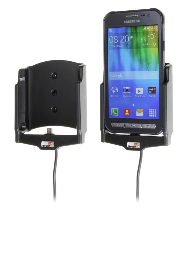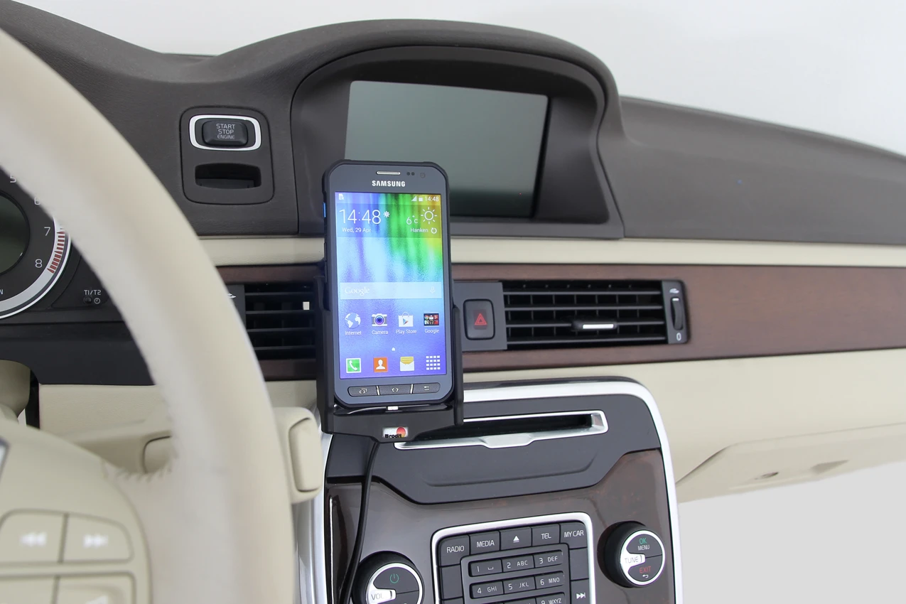 The active holder charges your Galaxy Xcover 3 when it is in the holder. The holder is attached onto a tilt swivel and can be adjusted in order to avoid light reflection. Connects to the vehicle’s cigarette lighter socket, 12/24 Volt. Attach onto a ProClip Mounting Platform.