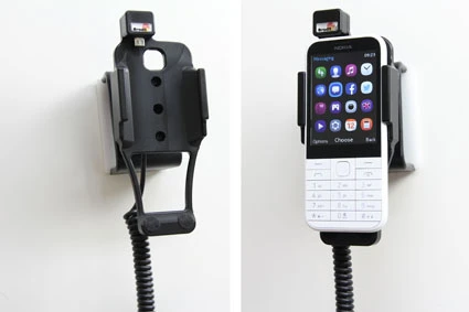 The active holder charges your Nokia when it is in the holder. The holder is attached onto a tilt swivel and can be adjusted in order to avoid light reflection. Connects to the vehicle’s cigarette lighter socket, 12/24 Volt. Attach onto a ProClip Mounting Platform.