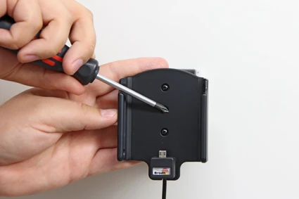 The active holder charges your Galaxy A5 (2016) when it is in the holder. The holder is attached onto a tilt swivel and can be adjusted in order to avoid light reflection. Connects to the vehicle’s cigarette lighter socket, 12/24 Volt. Attach onto a ProClip Mounting Platform in your car.