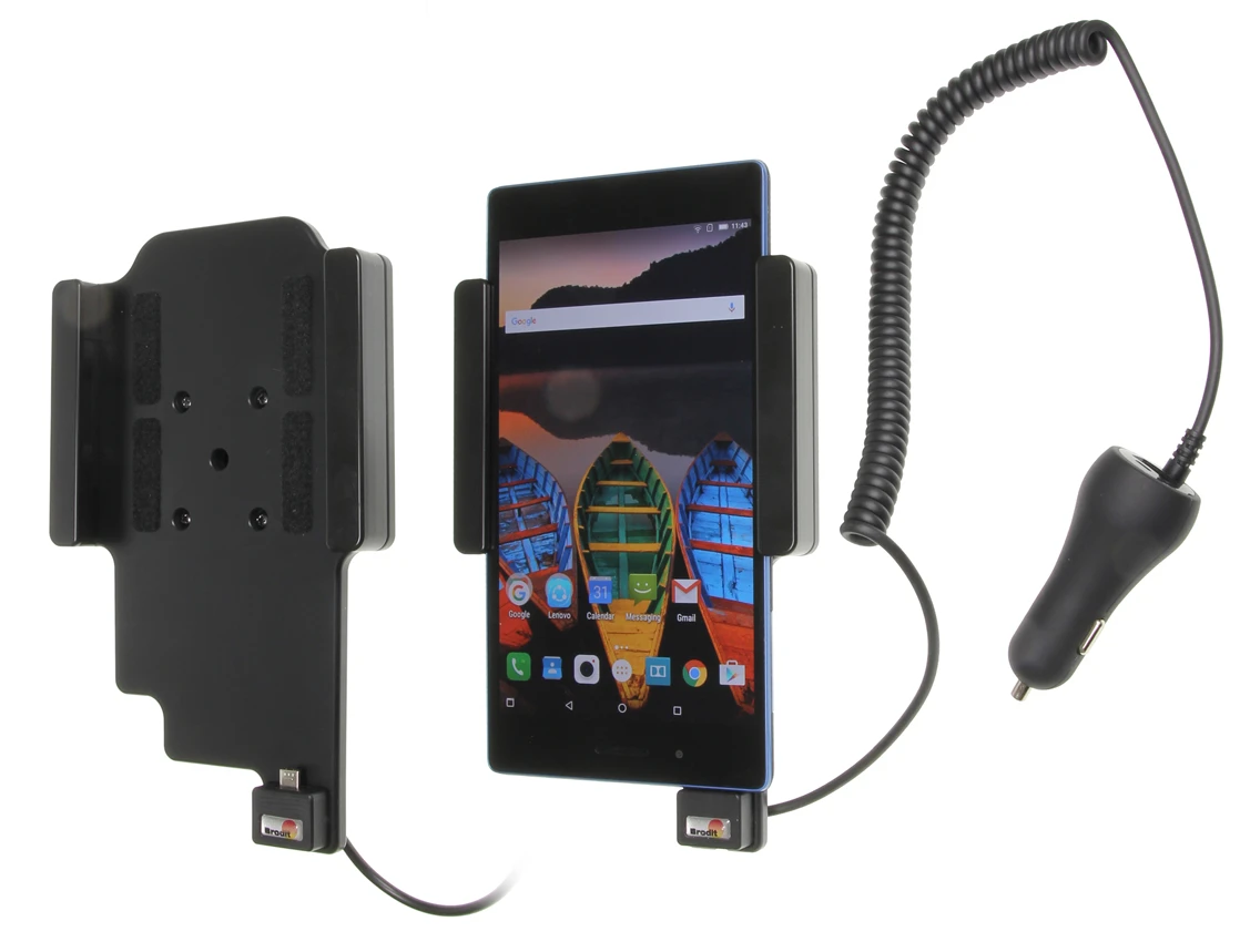 Keep your device's battery fully charged in an active holder, always within easy sight and reach! Neat, discreet and convenient. Custom made with a perfect, firm fit. With cig-plug cable, 2A charging via the Micro-USB connector. You can charge a second device via the USB A outlet in the cig-plug, 1A charging. You have full access to the camera and all buttons when the device is in the holder. It is easy to slide the tablet in place in the holder so it connects to the charging, and to take it out of the holder when leaving the vehicle.