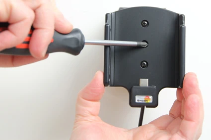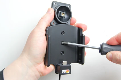 Keep your phone's battery fully charged in an active holder, always within easy sight and reach! Neat, discreet and convenient. Custom made with a perfect, firm fit. With cig-plug cable, 2A charging via the USB Type-C connector. You can charge a second device via the USB A outlet in the cig-plug, 1A charging. You have full access to the camera and all buttons when the device is in the holder. It is easy to slide the phone in place in the holder so it connects to the charging, and to take it out of the holder when leaving the vehicle. Fits only devices without the included back cover on.