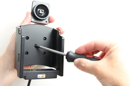 The holder is equipped with a tilt swivel so you can easily adjust the angle for better viewing, or switch between portrait and landscape mode. Tilts 20° and swivels 360°. Mounting plate 42x50 mm with predrilled AMPS-holes +2x3,5 mm centered holes. Made of high grade black ABS/Acetal plastic. Made in Sweden. Attach onto ProClip Mounting Platform.