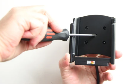 Place the holder over the attaching plate so the screw fits in the hole in the tilt swivel. Tighten the screw until the holder is firmly in place, but still can be adjusted.
