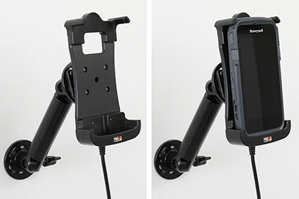 The active holder charges your battery when it is in the holder. The charging device connects to the device automatically when you put it in the holder. The holder is attached onto a tilt swivel and can be adjusted in order to avoid light reflection. Connects to the vehicle's cigarette lighter socket, 12/24 Volt.