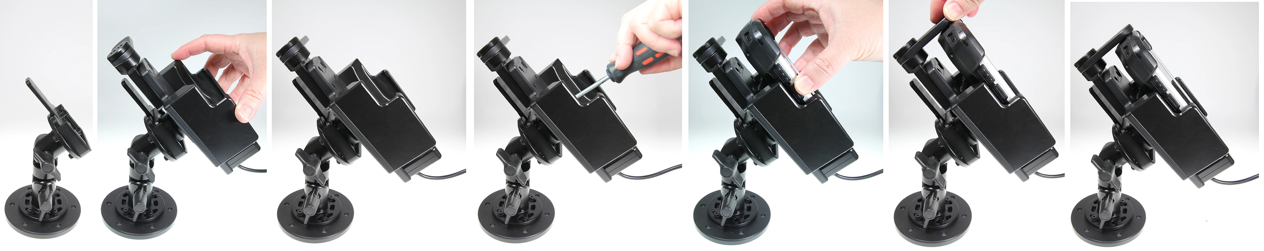 The choice for you who want to have you PDA firmly in place, properly attached and still within easy reach. The holder has a strong, robust design to withstand rough handling in professional use. The swiveling top part keeps your device extra securely in place in the holder, it "locks" the device in the holder so that it can not shake the least. It is easy to place the PDA in the holder, and to take it with you when leaving the vehicle. The holder is equipped with a tilt swivel so you can easily adjust the angle for good viewing. Attach onto a ProClip Mounting Platform or a Pedestal Mount. The charging device is automatically connected when you put the device in the holder. Connects to the vehicle's cigarette lighter socket, 12/24 Volt.