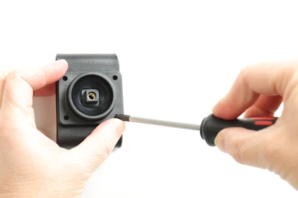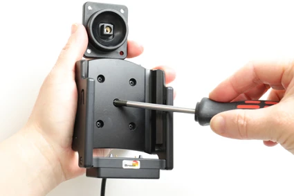 Place the holder over the attaching plate so the screw fits in the hole in the tilt swivel and screw it into place. Tighten the screw firm at first, then loosen it a bit so the holder is firmly in place, but still can be adjusted.