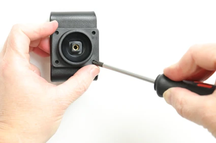 Place the holder over the attaching plate so the screw fits in the hole in the tilt swivel and screw it into place. Tighten the screw so the holder is firmly in place, but still can be adjusted.