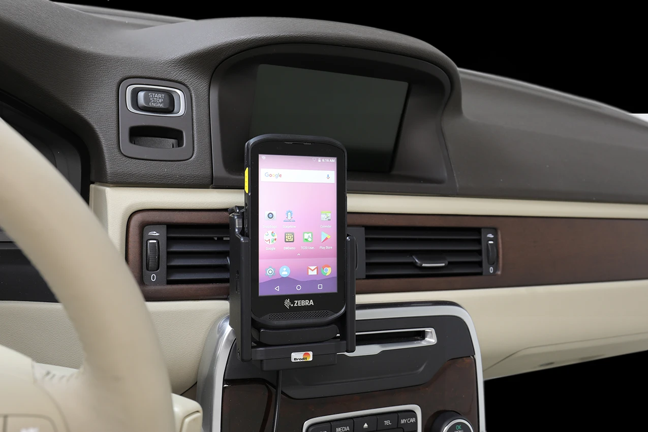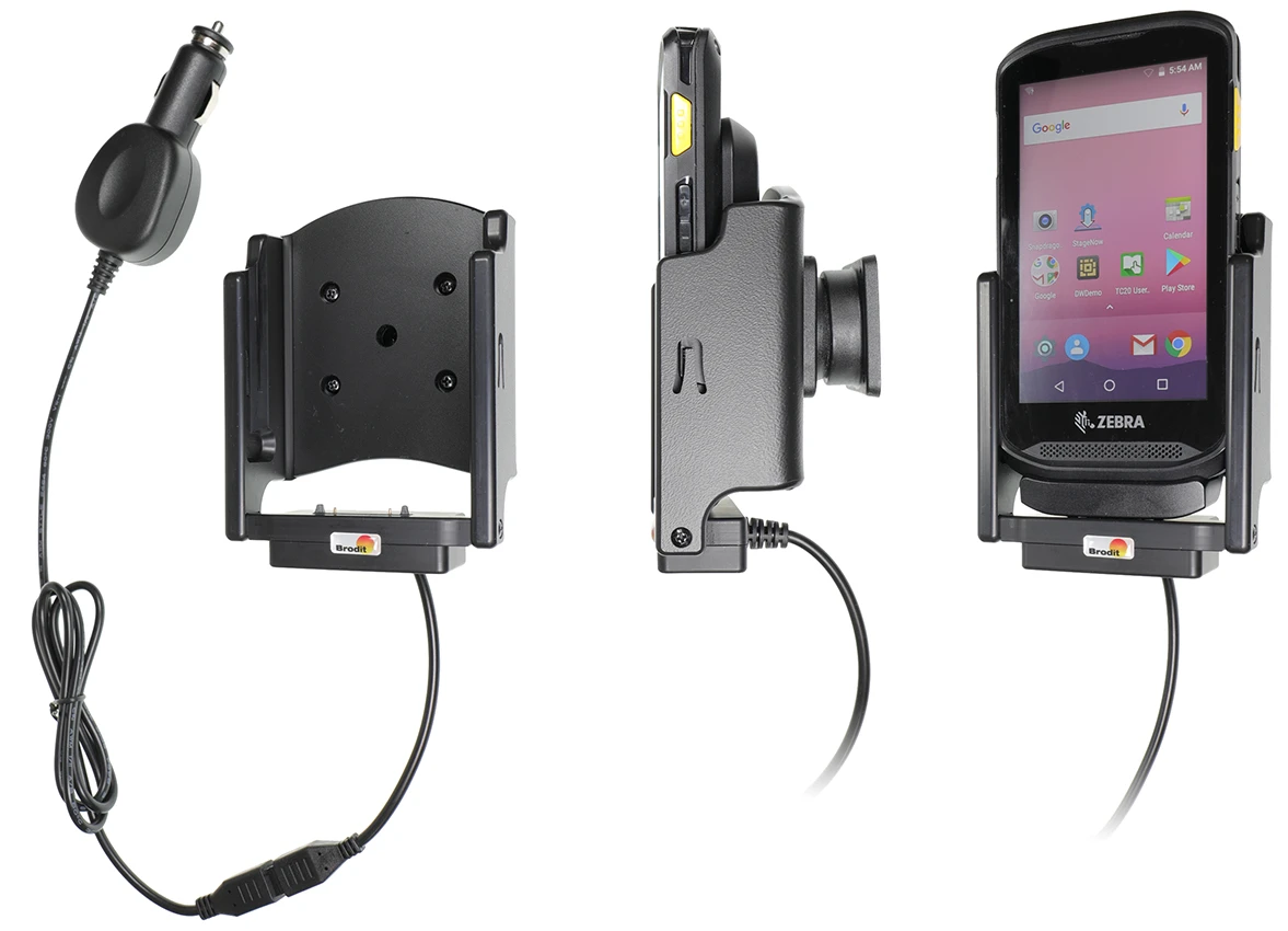 Customized holder with a perfect, firm fit for device with Powerbank BTRY-TC2X-PRPK1-01. Always keep your battery fully charged with this active holder with cig-plug cable. The holder is equipped with a tilt swivel so you can easily adjust the angle of your device for better viewing. Tilts 20° and swivels 360°. Made of high grade ABS/Acetal plastic. AMPS holes. Color: black. Made in Sweden. Attach onto a ProClip Mounting Platform or a Pedestal Mount.