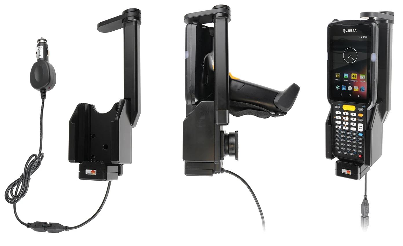The holder is equipped with a tilt swivel so you can easily adjust the angle for good viewing. Attach onto a ProClip Mounting Platform or a Pedestal Mount. The charging device is automatically connected when you put the device in the holder. Connects to the vehicle's cigarette lighter socket, 12/24 Volt.