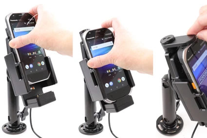 The choice for you who want to have you PDA firmly in place, properly attached and still within easy reach. The holder has a strong, robust design to withstand rough handling in professional use. The swiveling top part keeps your device extra securely in place in the holder, it "locks" the device in the holder so that it can not shake the least. It is easy to place the PDA in the holder, and to take it with you when leaving the vehicle. The holder is equipped with a tilt swivel so you can easily adjust the angle for good viewing. Attach onto a ProClip Mounting Platform or a Pedestal Mount. The charging device is automatically connected when you put the device in the holder. Connects to the vehicle's cigarette lighter socket, 12/24 Volt.