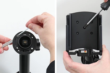 The holder is equipped with a tilt swivel so you can easily adjust the angle for better viewing, or switch between portrait and landscape mode. Tilts 17° and swivels 360°. Mounting plate 42x50 mm with 4 mm AMPS-holes. Made of high grade black ABS/Acetal plastic. Made in Sweden. Attach onto a Pedestal Mount or an ProClip mounting platform.