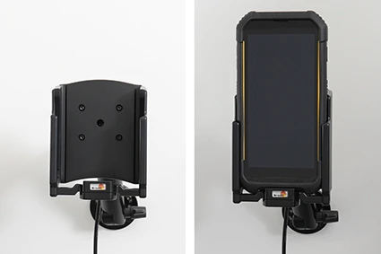 The active holder charges your battery when it is in the holder. The charging device connects to the unit automatically when you put the unit in the holder. The holder is attached onto a tilt swivel and can be adjusted in order to avoid light reflection. Connects to the vehicle's cigarette lighter socket, 12/24 Volt.