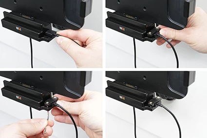 This holder is the perfect choice when you want both charging and USB-Host function for your device. The USB-A port provides up to 1.5A, so even the most demanding barcode scanner, keyboard, sensor or other accessory can be connected directly to the device.