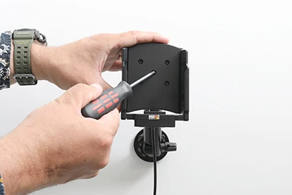 The holder is equipped with a tilt swivel so you can easily adjust the angle for better viewing, or switch between portrait and landscape mode. Tilts 17° and swivels 360°. Mounting plate 42x50 mm with 4 mm AMPS-holes. Made of high grade black ABS/Acetal plastic. Made in Sweden. Attach onto a Pedestal Mount or an ProClip mounting platform.