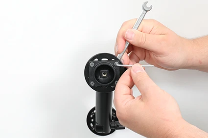 Place the holder over the attaching plate so the screw fits in the hole in the tilt swivel and screw it into place. Tighten the screw firm at first, then loosen it a bit so the holder is firmly in place, but still can be adjusted.