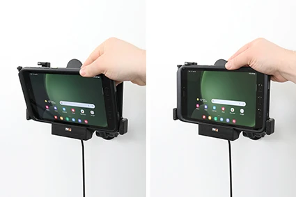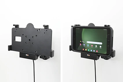 Use an active holder for your Galaxy Tab Active while driving and you will always have a freshly charged battery! The holder provides a neat and comfortable installation - safe and convenient. The holder is equipped with a cig-plug for connection to the vehicle's 12/24 Volt socket. 3A charging. Charging via pogo plug.