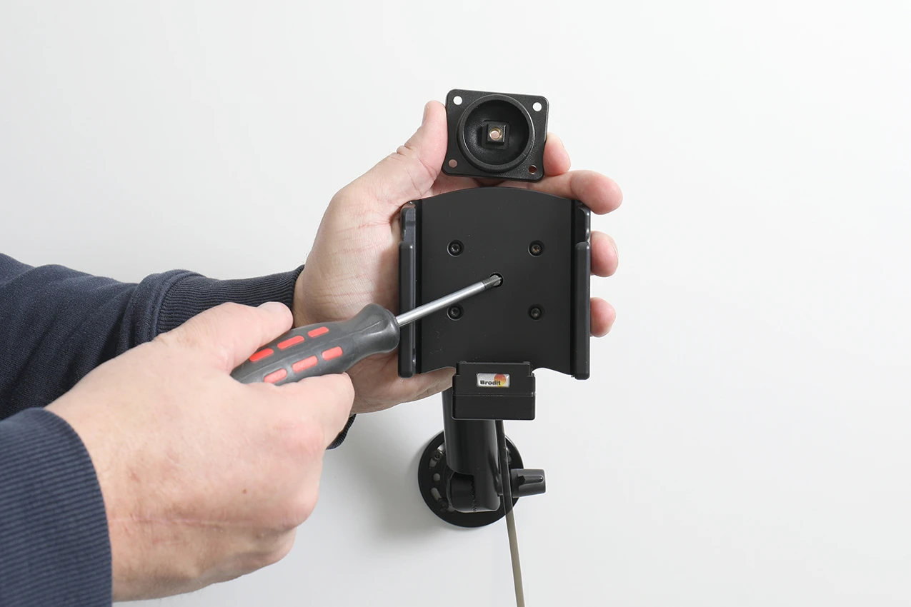 The holder is equipped with a tilt swivel so you can easily adjust the angle for better viewing, or switch between portrait and landscape mode. Tilts 17° and swivels 360°. Mounting plate 42x50 mm with 4 mm AMPS-holes. Made of high grade black ABS/Acetal plastic. Made in Sweden. Attach onto a Pedestal Mount or an ProClip mounting platform.