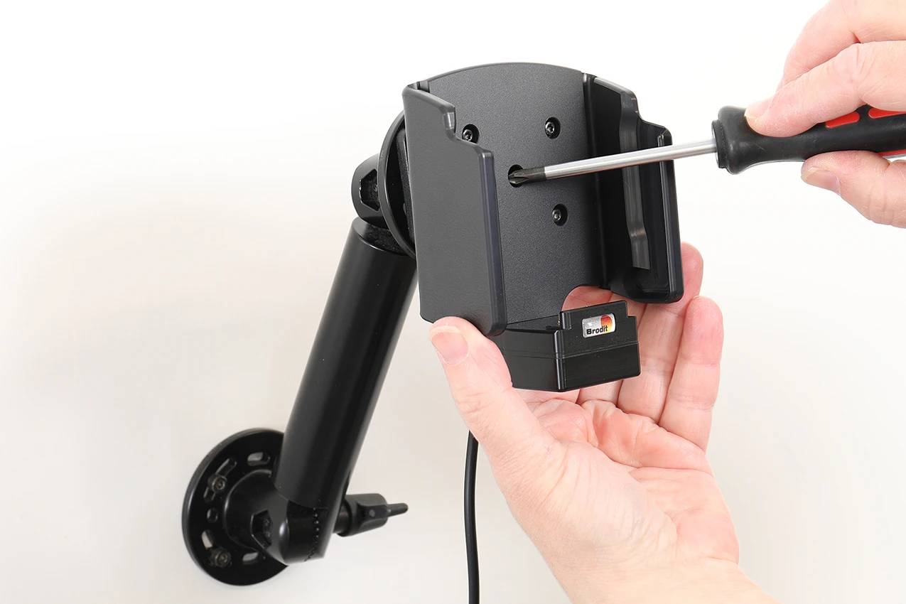The easy-switching system enables you to upgrade the holder only, and keep the installed cables. It saves you a lot of time! When upgrading to a new device, you do not longer need to make a full installation. Same goes for maintenance in case of warranty or damage. You simply disconnect the holder from the charging cable via the Molex 6-pin quick connector, and then connect the new holder. The switch is done in a few seconds.