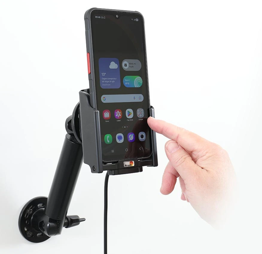The easy-switching system enables you to upgrade the holder only, and keep the installed cables. It saves you a lot of time! When upgrading to a new device, you do not longer need to make a full installation. Same goes for maintenance in case of warranty or damage. You simply disconnect the holder from the charging cable via the Molex 6-pin quick connector, and then connect the new holder. The switch is done in a few seconds.