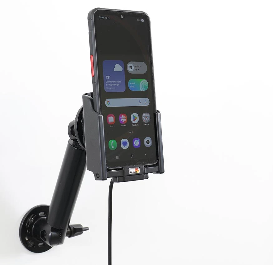 The holder is equipped with a tilt swivel so you can easily adjust the angle for better viewing, or switch between portrait and landscape mode. Tilts 17° and swivels 360°. Mounting plate 42x50 mm with 4 mm AMPS-holes. Made of high grade black ABS/Acetal plastic. Made in Sweden. For easy and optimal installation, attach the holder onto a custom ProClip Vehicle Mount, a Pedestal Mount or attach it directly to any surface.