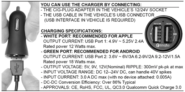 This product supports Qualcomm QC 2.0 quick charge (provided the device supports Qualcomm QC 2.0 quick charge).