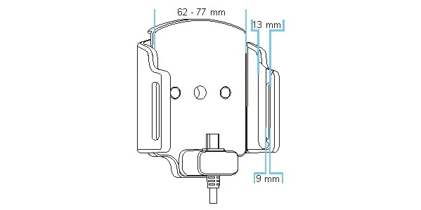 The adjustable holder fits for devices with and without skin with the following dimensions: Width: 62-77 mm, Thickness: 9-13 mm. Adjustable holders come in various sizes. Measure your device and compare with the holder specifications in order to make sure you have chosen the correct product (if you are using a skin: measure the device with the skin in place).