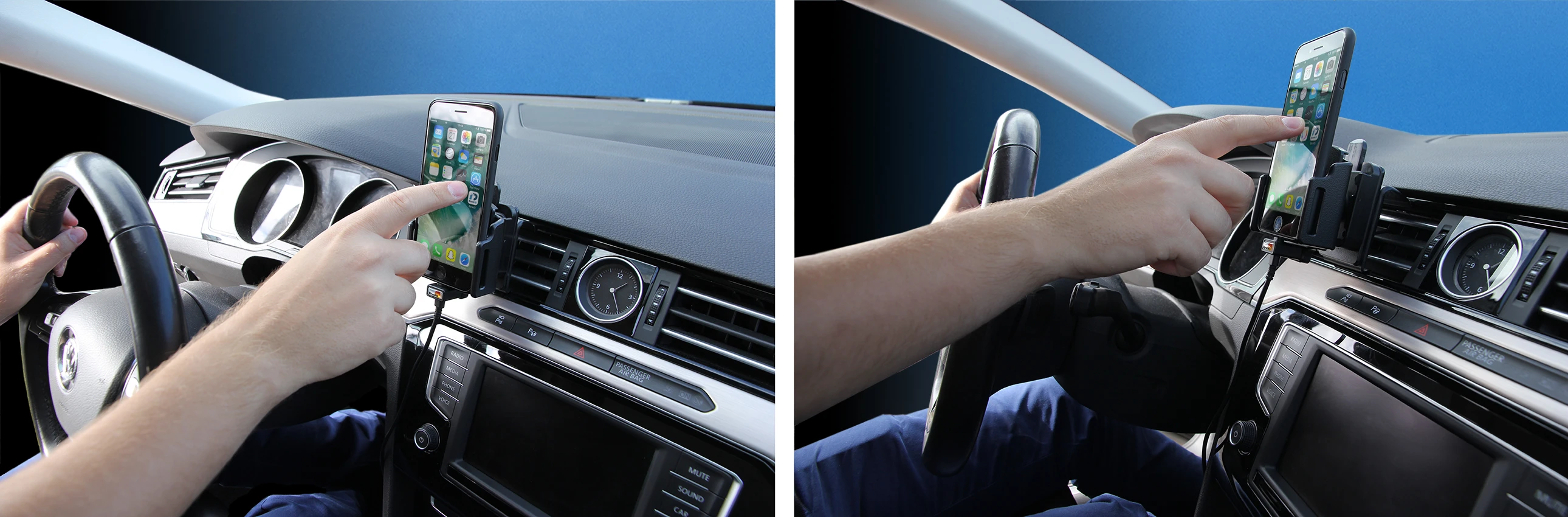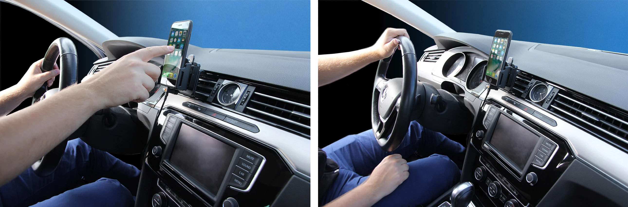 Use an active holder for your iPhone on the road and you will always have a freshly charged battery! In addition, you will always have your iPhone within easy sight and reach. Safe, comfortable and convenient! The holder has a neat and discreet design which blends well with the vehicle's interior. Your iPhone is held securely in place in an upright position for maximum cellular reception.
