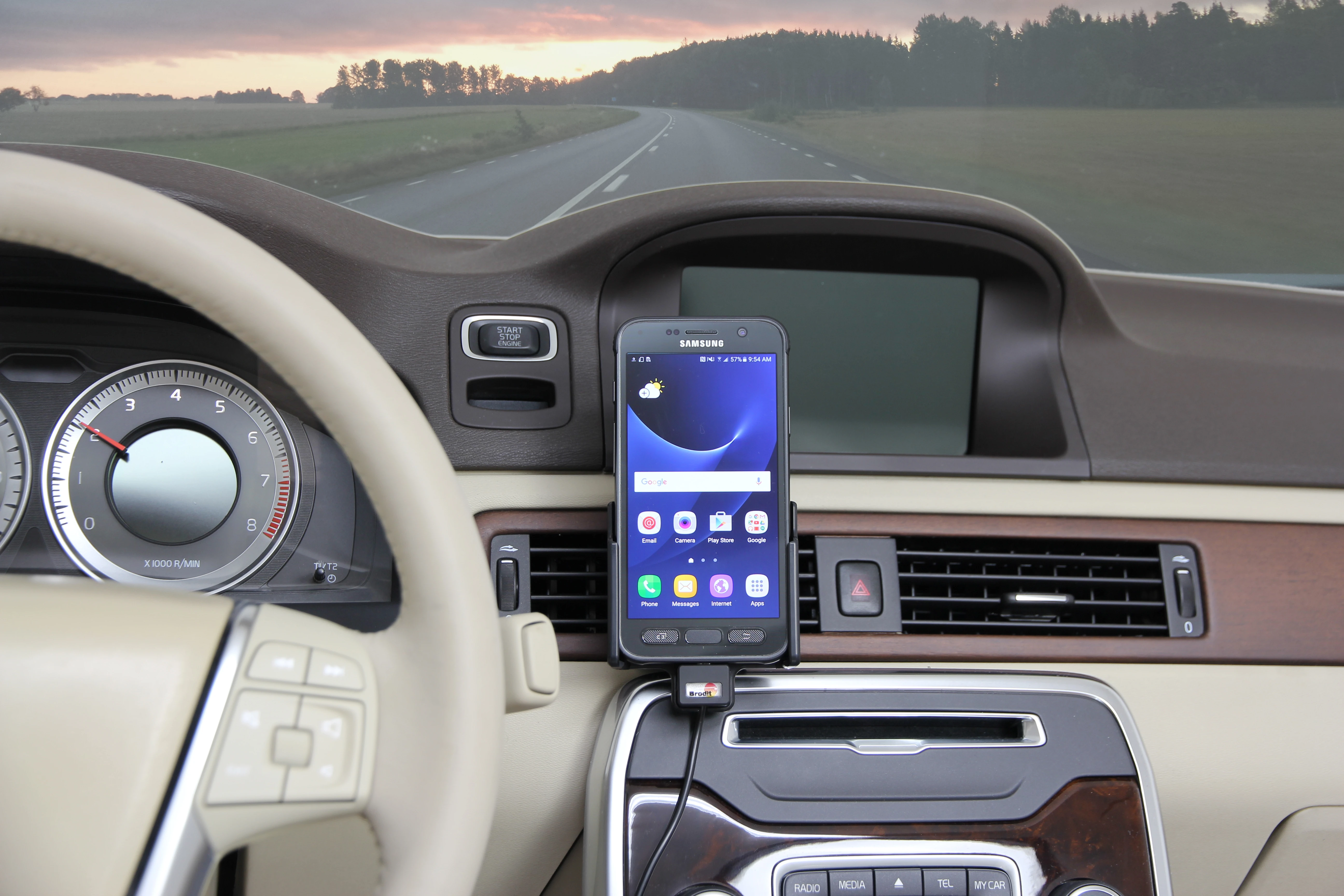 Keep your phone's battery fully charged in an active holder, always within easy sight and reach! Neat, discreet and convenient. Custom made with a perfect, firm fit. With USB-cable with cig-plug adapter, choose to connect either to the vehicle's USB outlet or the 12/24V socket.You have full access to the camera and all buttons when the device is in the holder. It is easy to slide the device into place in the holder so it connects to the charging, and to take it out of the holder when leaving the car.