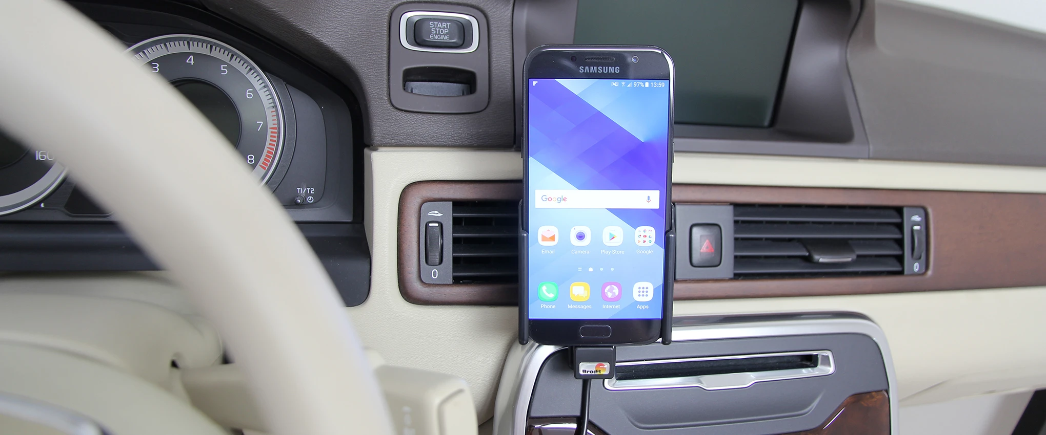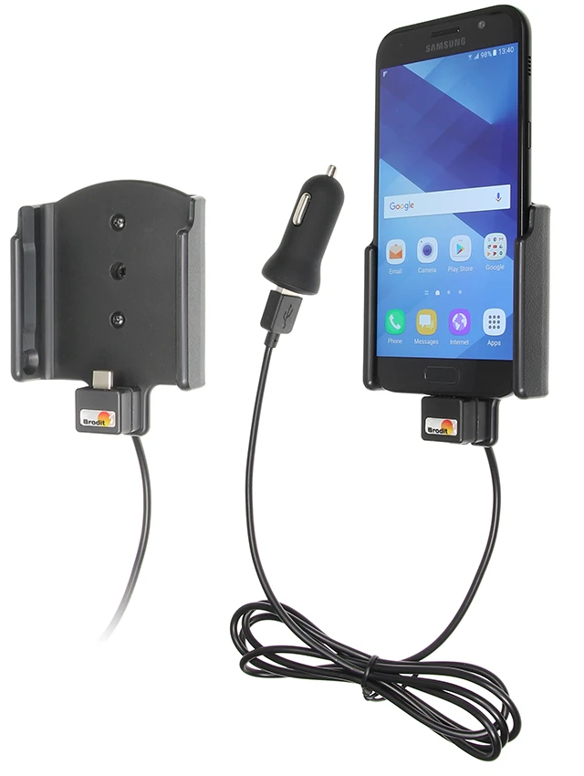 The active holder charges your Galaxy A5 (2017) when it is in the holder. You can choose to connect the cig-plug to the car's 12 Volt socket, or to remove the cig-plug adapter and connect the USB cable to the car's (or stereo's) USB connector.