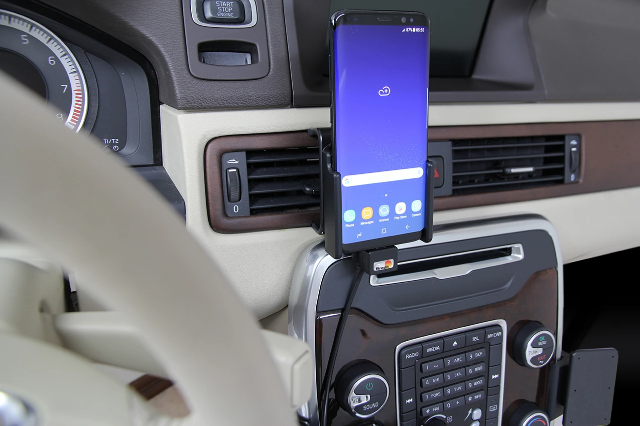 Keep your phone's battery fully charged in an active holder, always within easy sight and reach! Neat, discreet and convenient. Custom made with a perfect, firm fit. With USB Type-C cable and cig-plug adapter, choose to connect either to the vehicle's USB outlet or the 12/24V socket.You have full access to the camera and all buttons when the device is in the holder. It is easy to slide the device into place in the holder so it connects to the charging, and to take it out of the holder when leaving the car. Fits only devices without the included back cover on.