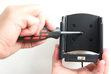 Place the holder over the attaching plate so the screw fits in the hole in the tilt swivel. Tighten the screw until the holder is firmly in place, but still can be adjusted.