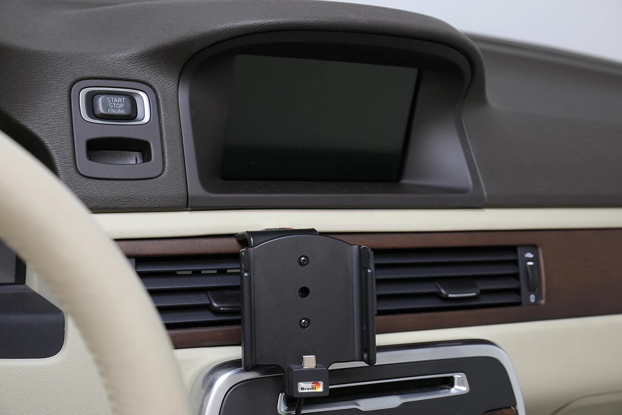 Keep your phone's battery fully charged in an active holder, always within easy sight and reach! Neat, discreet and convenient. Custom made with a perfect, firm fit. With USB-cable with cig-plug adapter, choose to connect either to the vehicle's USB outlet or the 12/24V socket.You have full access to the camera and all buttons when the device is in the holder. It is easy to slide the device into place in the holder so it connects to the charging, and to take it out of the holder when leaving the car. Fits only devices without the included back cover on.