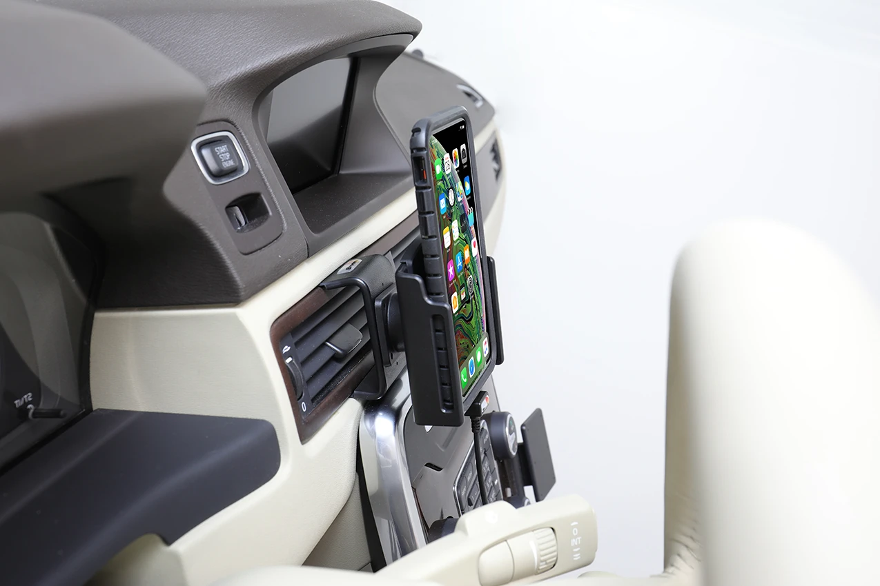 The holder is equipped with a tilt swivel so you can adjust the angle of your device in order to avoid light reflection on the screen. You can tilt the holder 17° in each direction. Attach onto ProClip Mounting Platform.