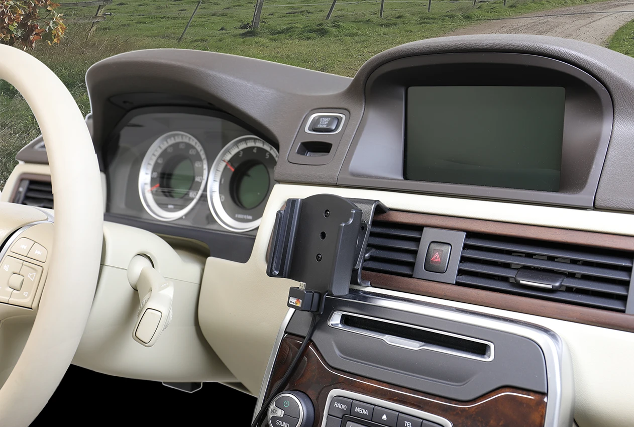 Keep your phone's battery fully charged in an active holder, always within easy sight and reach! Neat, discreet and convenient. Custom made with a perfect, firm fit. With USB-cable with cig-plug adapter, choose to connect either to the vehicle's USB outlet or the 12/24V socket.You have full access to the camera and all buttons when the device is in the holder. It is easy to slide the device into place in the holder so it connects to the charging, and to take it out of the holder when leaving the car.