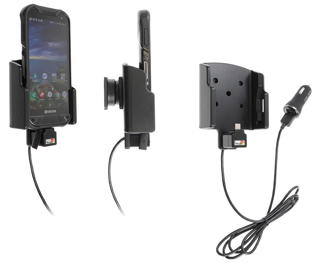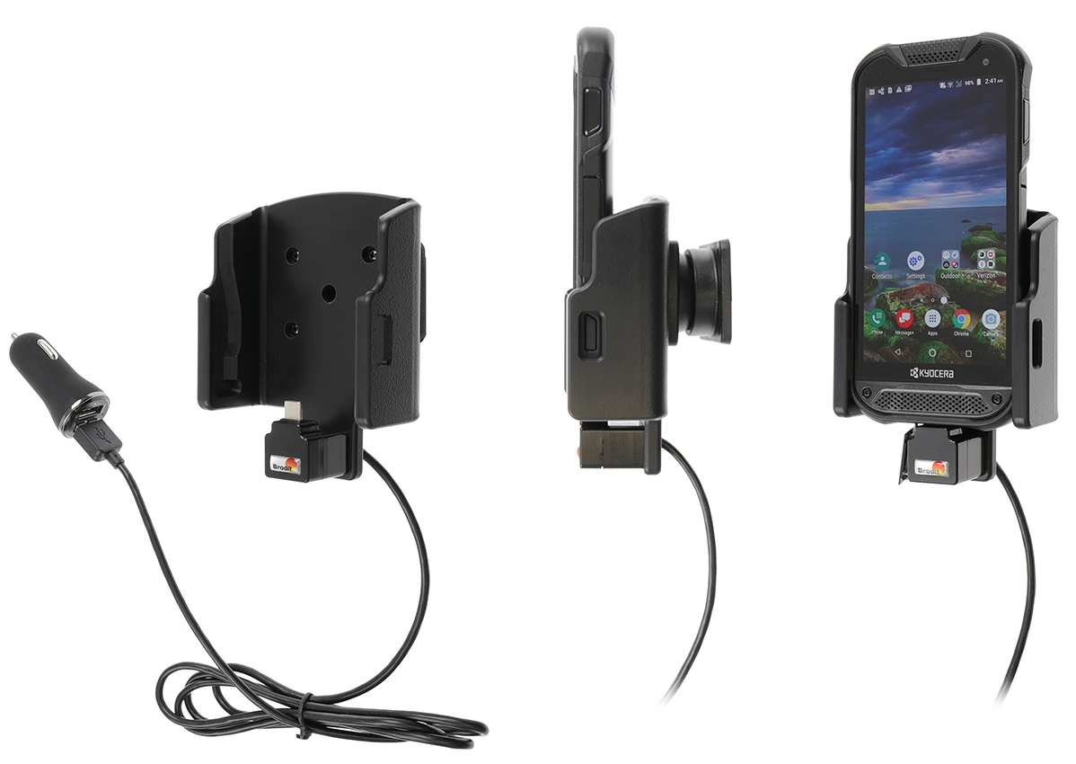 Keep your phone's battery fully charged in an active holder, always within easy sight and reach! Neat, discreet and convenient. Custom made with a perfect, firm fit. With USB-cable with cig-plug adapter, choose to connect either to the vehicle's USB outlet or the 12/24V socket.You have full access to the camera and all buttons when the device is in the holder. It is easy to slide the device into place in the holder so it connects to the charging, and to take it out of the holder when leaving the car.