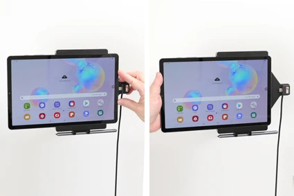 An installation of a tablet onto a vehicle’s dashboard is always done on the customer’s own responsibility. Brodit recommends to use tablets on the car’s headrest, installed onto a Brodit headrest mount.