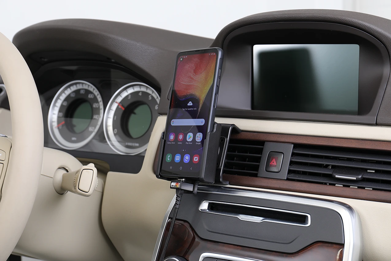 Keep your device fully charged at all times -without the daily wear and tear of the connector! Custom made holder with a perfect, firm fit. With magnetic tip and a USB-cable with cig-plug adapter, choose to connect either to the vehicle's USB outlet or the 12/24V socket. The cig-plug adapter has two USB ports: QC 3.0A + 2.4A.You have full access to the camera and all buttons when the device is in the holder.
