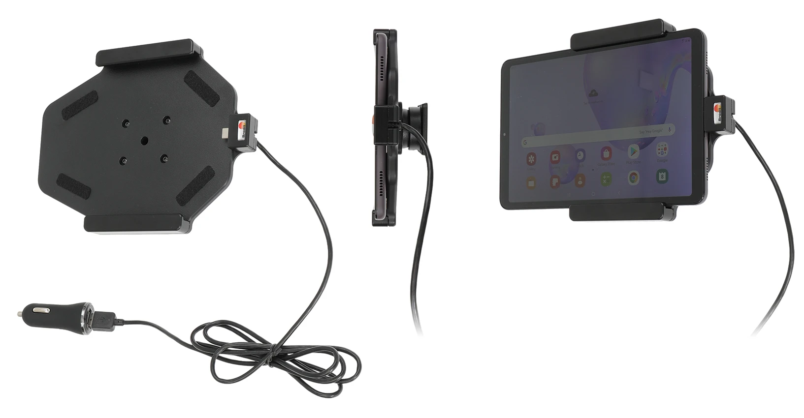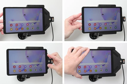 An installation of a tablet onto a vehicle’s dashboard is always done on the customer’s own responsibility. Brodit recommends to use tablets on the car’s headrest, installed onto a Brodit headrest mount.