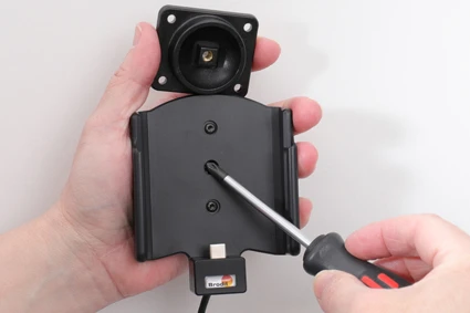 The holder is equipped with a tilt swivel so you can easily adjust the angle for better viewing, or switch between portrait and landscape mode. Tilts 17° and swivels 360°. Mounting plate 42x50 mm with 4 mm AMPS-holes. Made of high grade black ABS/Acetal plastic. Made in Sweden. Attach onto a ProClip mounting platform.