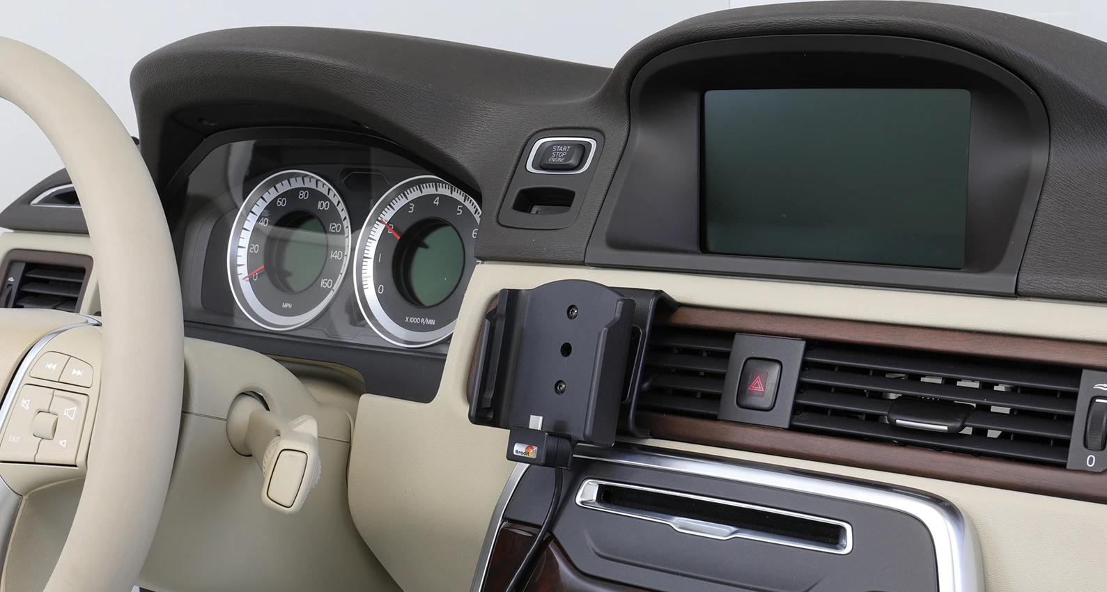 Keep your phone's battery fully charged in an active holder, always within easy sight and reach! Neat, discreet and convenient. Custom made with a perfect, firm fit. With USB-cable with cig-plug adapter, choose to connect either to the vehicle's USB outlet or the 12/24V socket.The cig-plug adapter has two USB ports: QC 3.0A + 2.4A. You have full access to the camera and all buttons when the device is in the holder. It is easy to slide the device into place in the holder so it connects to the charging, and to take it out of the holder when leaving the car.