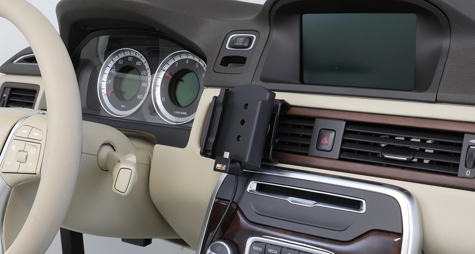 Keep your phone's battery fully charged in an active holder, always within easy sight and reach! Neat, discreet and convenient. Custom made with a perfect, firm fit. With USB-cable with cig-plug adapter, choose to connect either to the vehicle's USB outlet or the 12/24V socket.The cig-plug adapter has two USB ports: QC 3.0A + 2.4A. You have full access to the camera and all buttons when the device is in the holder. It is easy to slide the device into place in the holder so it connects to the charging, and to take it out of the holder when leaving the car.