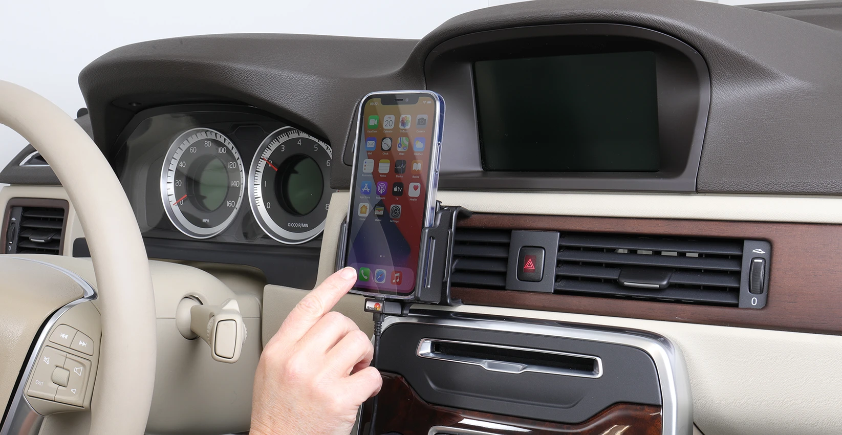 Before using the holder you need to set the holder's width so it suits your device, then your phone is held firmly in place in an upright position for maximum cellular reception. The holder has a neat and discreet design which blends well with the vehicle's interior. Attach onto ProClip Mounting Platform.
