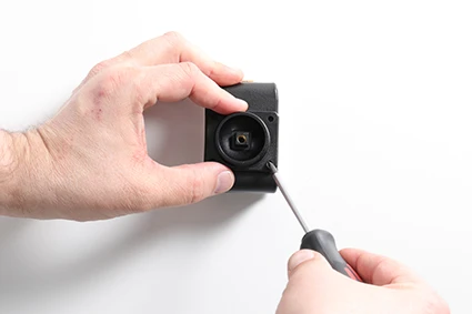 Place the holder over the attaching plate so the screw fits in the hole in the tilt swivel and screw it into place. Tighten the screw so the holder is firmly in place, but still can be adjusted.