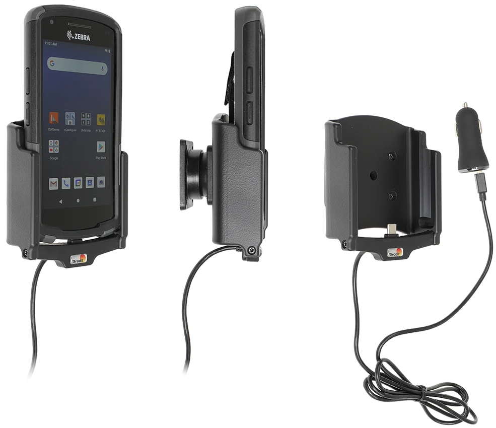 Keep your phone's battery fully charged in an active holder, always within easy sight and reach! Neat, discreet and convenient. Custom made with a perfect, firm fit. With USB-A cable with cig-plug adapter, choose to connect either to the vehicle's USB-A outlet or the 12/24V socket.The cig-plug adapter has two USB-A ports: QC 3.0A + 2.4A. You have full access to the camera and all buttons when the device is in the holder. It is easy to slide the device into place in the holder so it connects to the charging, and to take it out of the holder when leaving the car.