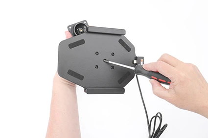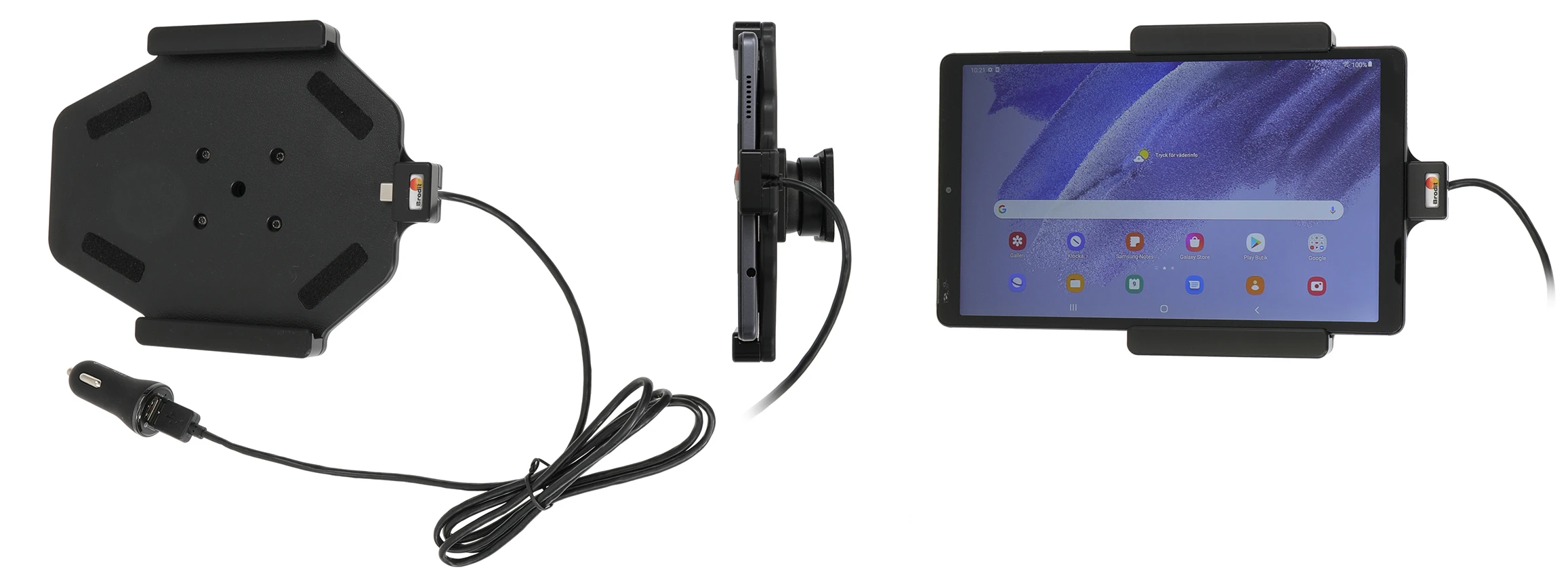 An installation of a tablet onto a vehicle’s dashboard is always done on the customer’s own responsibility. Brodit recommends to use tablets on the car’s headrest, installed onto a Brodit headrest mount.