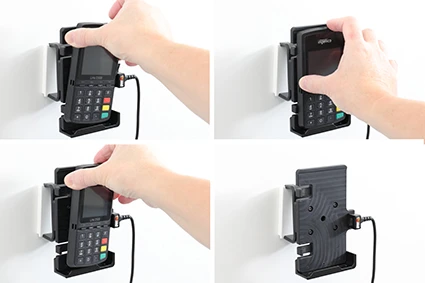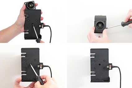 The holder is equipped with a tilt swivel so you can easily adjust the angle for better viewing, or switch between portrait and landscape mode. Tilts 17° and swivels 360°. Mounting plate 42x50 mm with 4 mm AMPS-holes. Made of high grade ABS/Acetal plastic. Color: black. Made in Sweden. Attach onto a ProClip Mounting Platform or a Pedestal Mount.