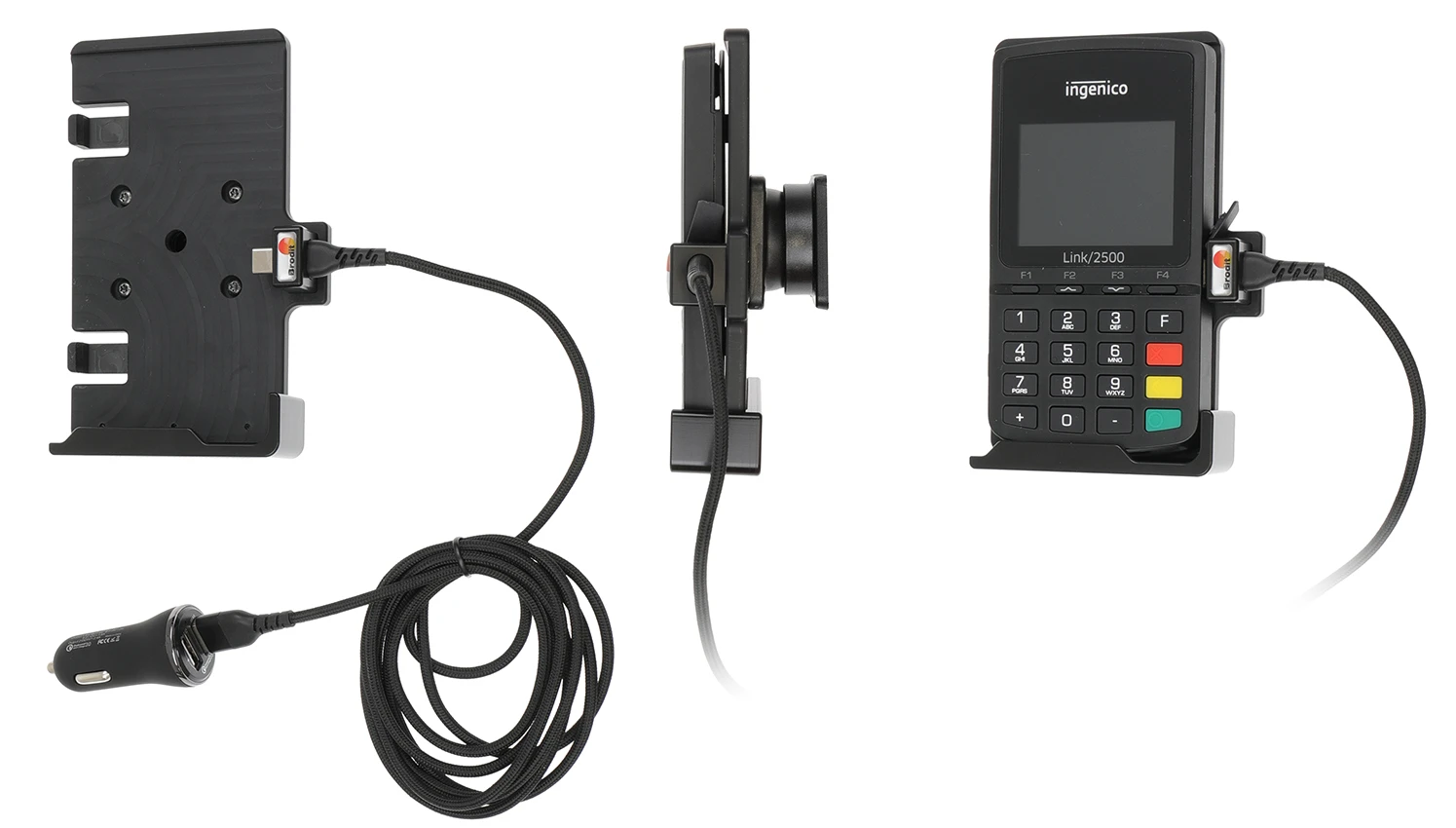 Keep your device fully charged at all times -without the daily wear and tear of the connector! Custom made holder with a perfect, firm fit. With magnetic tip and a USB-cable with cig-plug adapter, choose to connect either to the vehicle's USB outlet or the 12/24V socket. The cig-plug adapter has two USB ports: QC 3.0A + 2.4A.
