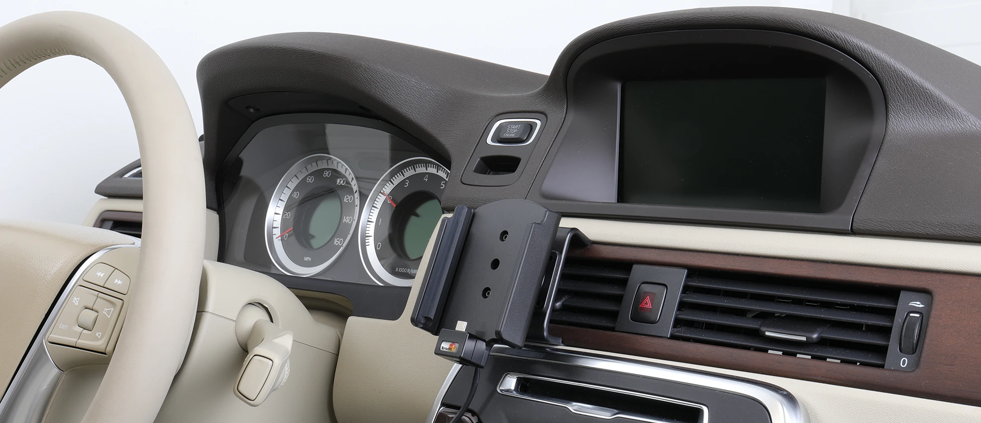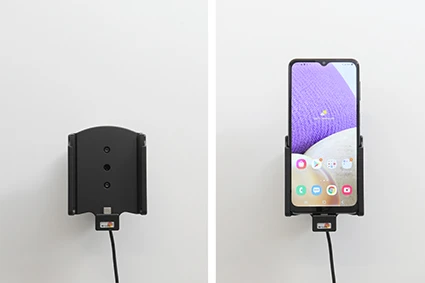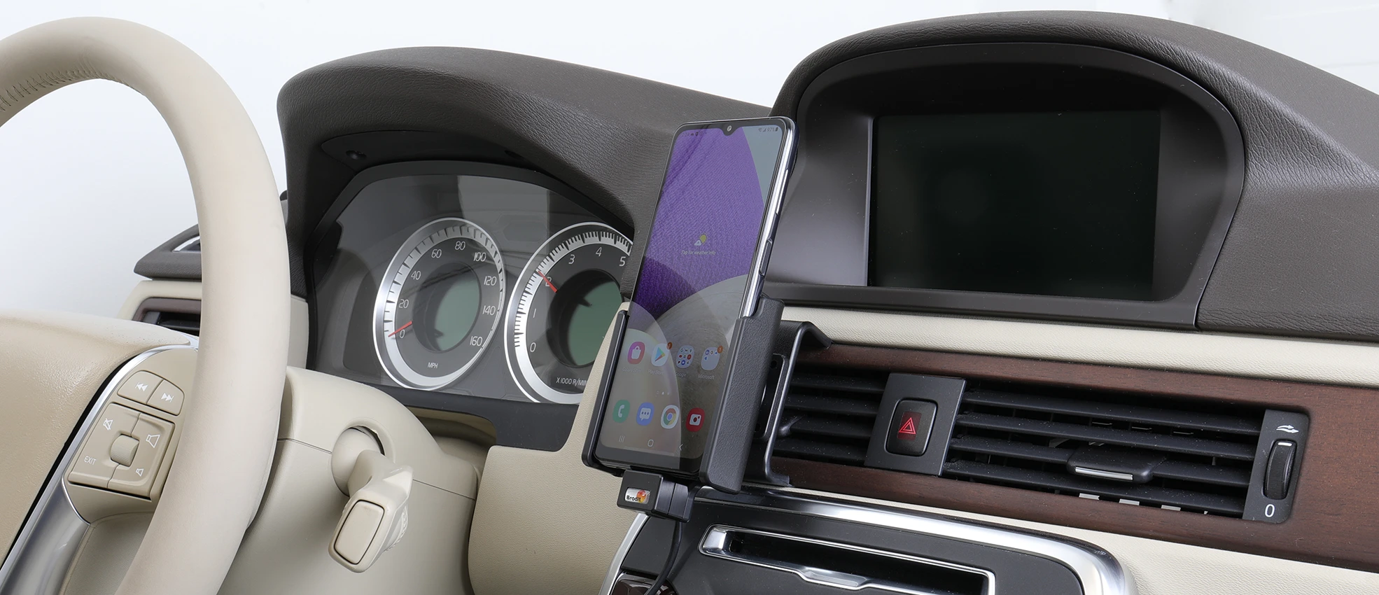 Keep your phone's battery fully charged in an active holder, always within easy sight and reach! Neat, discreet and convenient. Custom made with a perfect, firm fit. With USB-A cable with cig-plug adapter, choose to connect either to the vehicle's USB-A outlet or the 12/24V socket.The cig-plug adapter has two USB-A ports: QC 3.0A + 2.4A. You have full access to the camera and all buttons when the device is in the holder. It is easy to slide the device into place in the holder so it connects to the charging, and to take it out of the holder when leaving the car.