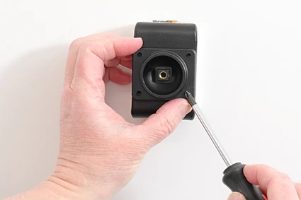 Place the attaching plate onto the desired position. Screw the attaching plate into place with the enclosed screws.