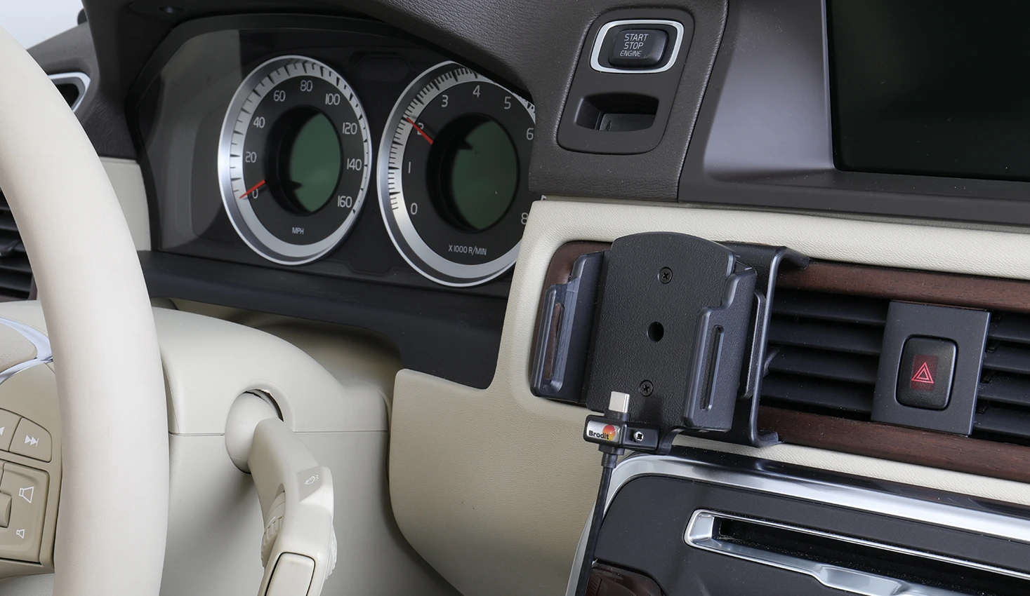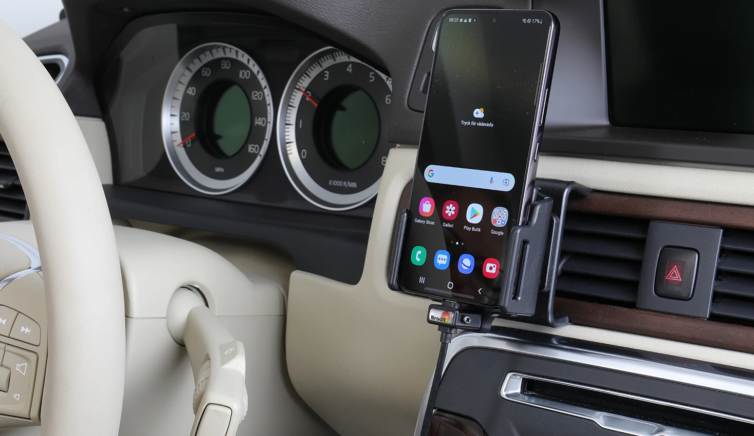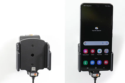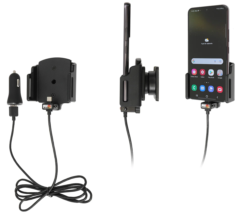 With your mobile in a holder while driving you will always have it within easy sight and reach! And with an active holder you always have a charged battery when leaving the car. Neat, discreet and convenient! With USB-cable with cig-plug adapter, choose to connect either to the vehicle's USB outlet or the 12/24V socket. The cig-plug adapter has two USB ports: QC 3.0A + 2.4A. It is easy to slide the device into place in the holder so it connects to the charging, and to take it out of the holder when leaving the car.